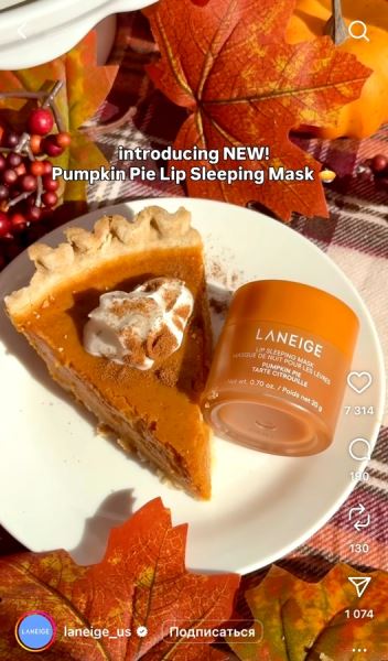 Если вы любите тыкву, как люблю ее я. Если предпочитаете: тыквенные десерты, цвета, оттенки осени, которые она в себе олицетворяет, то вас заинтересует новый выпуск маски для губ Ланеж с ароматом тыквенного пирога.