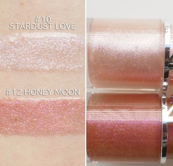 - 10 Stardust Love — прозрачный розовый с глиттером, напоминающий сладкую сахарную вату. Этот оттенок придает коже эффект естественного, воздушного румянца и сияние, визуально улучшает ее тон.