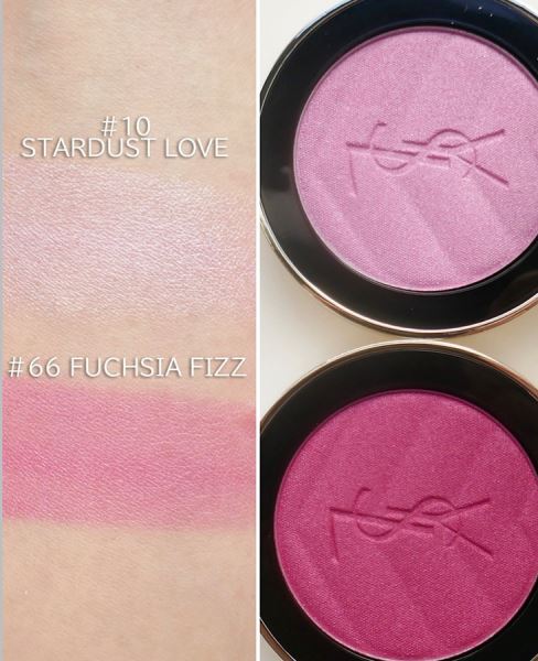 - 66 Fuchsia Fizz — сверкающий ягодный розовый, напоминающий кисло-сладкий леденец. Яркий, но нежный оттенок с крупными блестками, который придает лицу очаровательный румянец.