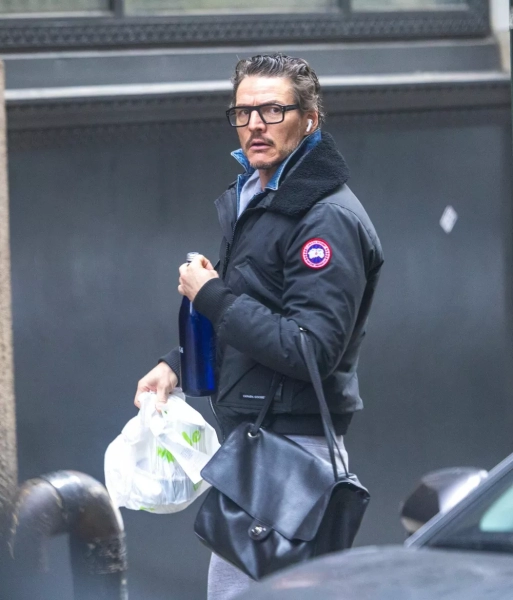 Вчера, 17 февраля, нью-йоркские папарацци поймали актера по пути на тренировку. Педро был одет в черную куртку-бомбер с меховым воротником от Canada Goose, которую накинул поверх синей джинсовки, базовые джоггеры в оттенке серый меланж и беговые кроссовки молочного оттенка. В одной руке Паскаль нес черную кожаную сумку-портфель от Chanel, а в другой — обычный полиэтиленовый пакет из супермаркета.