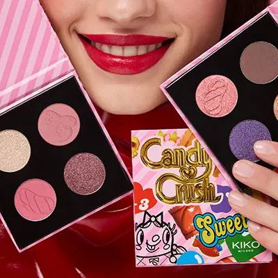 Kiko Milano и Candy Crush Saga (игра-головоломка компании King) объединились, чтобы выпустить в коллаборации коллекцию декоративной косметики Kiko Milano X Candy Crush Collection, где гламур встречается с игрой. Вдохновленная культовой игрой, игривая коллекция включает восемь уникальных продуктов, созданных для того, чтобы превратить ваш рутинный макияж в веселье. Сочетание сверкающих оттенков с футлярами, покрытыми конфетами, — это сладкий праздник безграничной красоты.