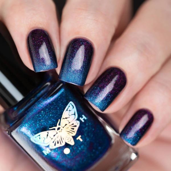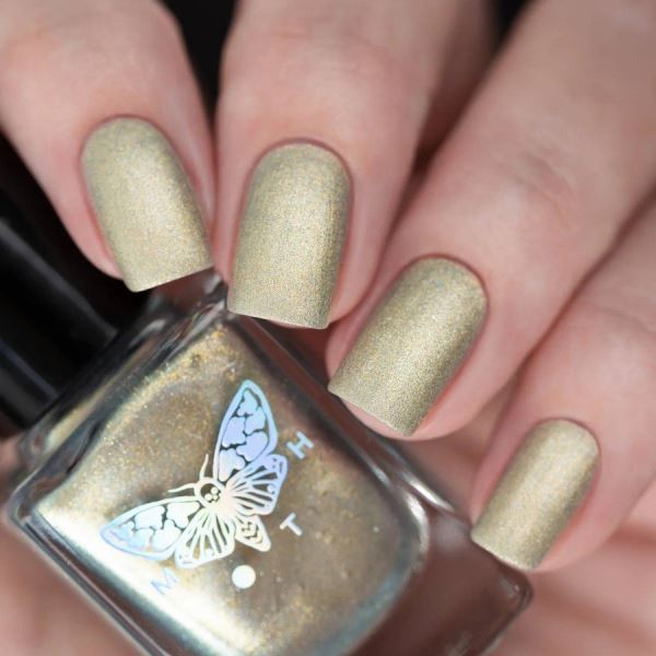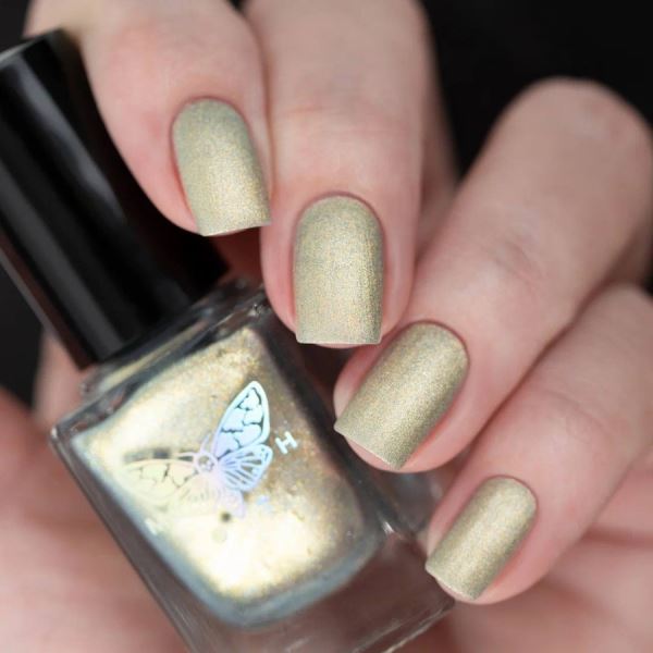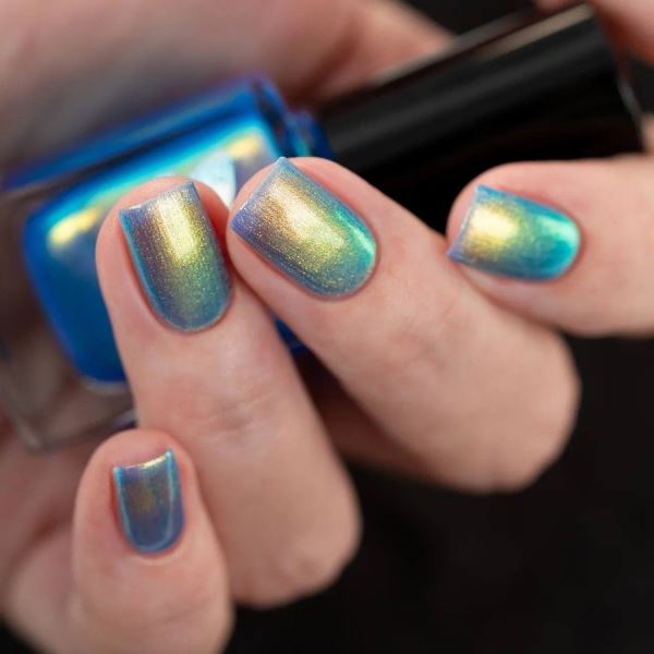 Матовый лак с необычным сочетанием синего и золотого шиммеров.