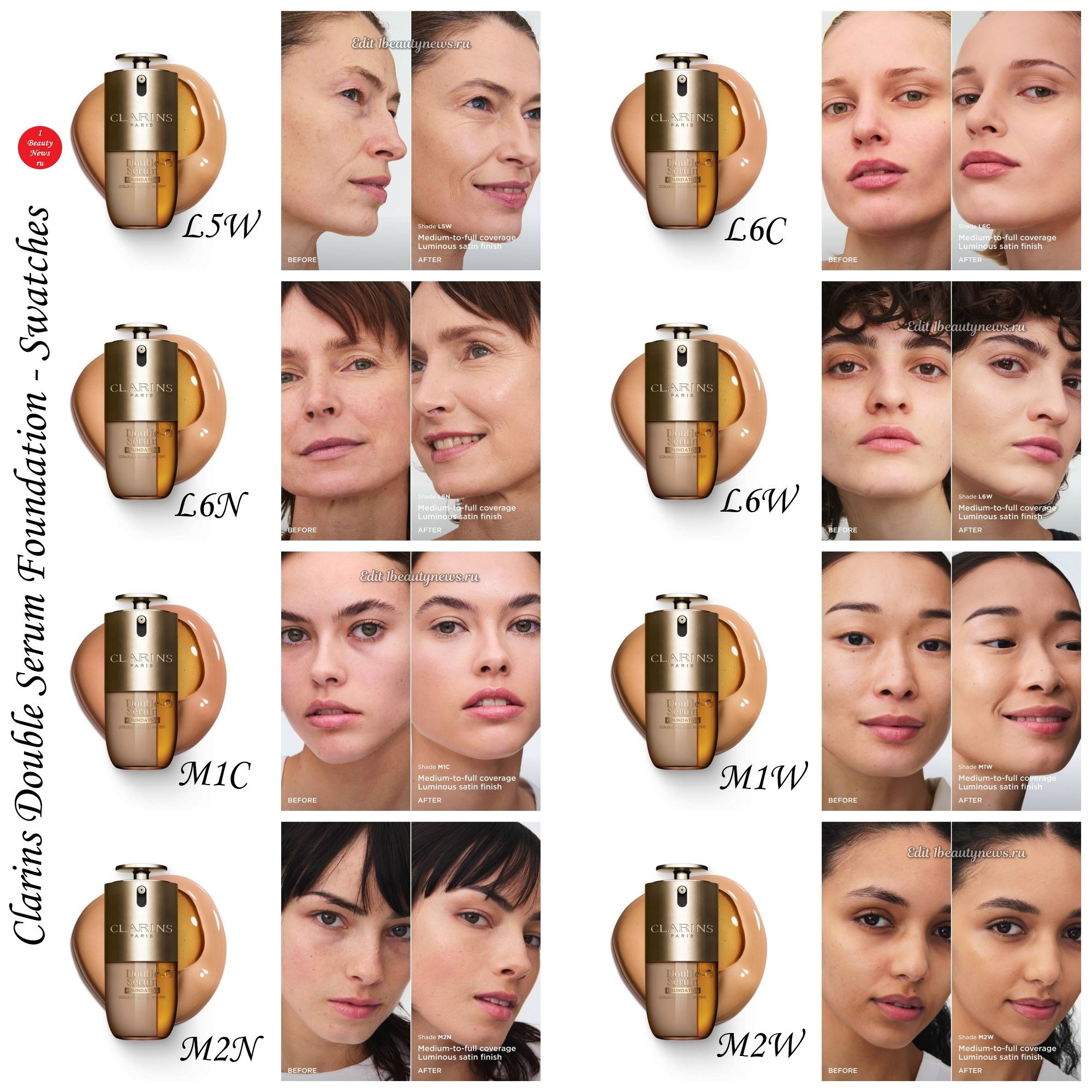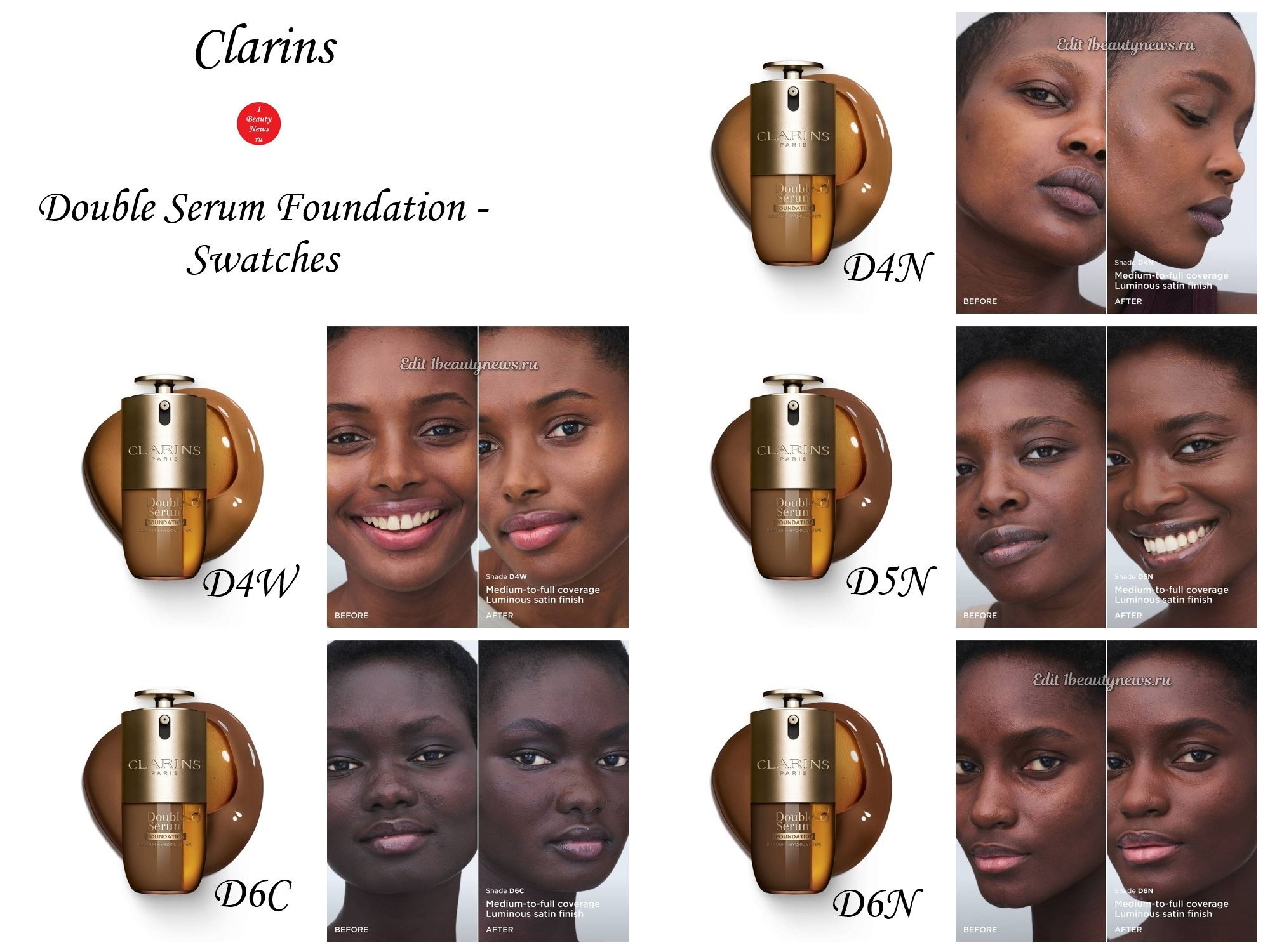 Промо-свотчи тональной основы Clarins Double Serum Foundation — Swatches: