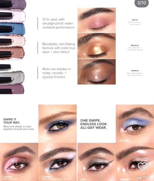 Кремовая формула с высокой пигментацией создана для быстрых, простых и универсальных образов — от мягких и естественных до ярких и гламурных.