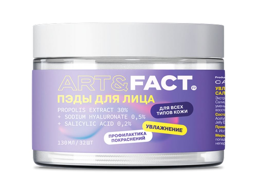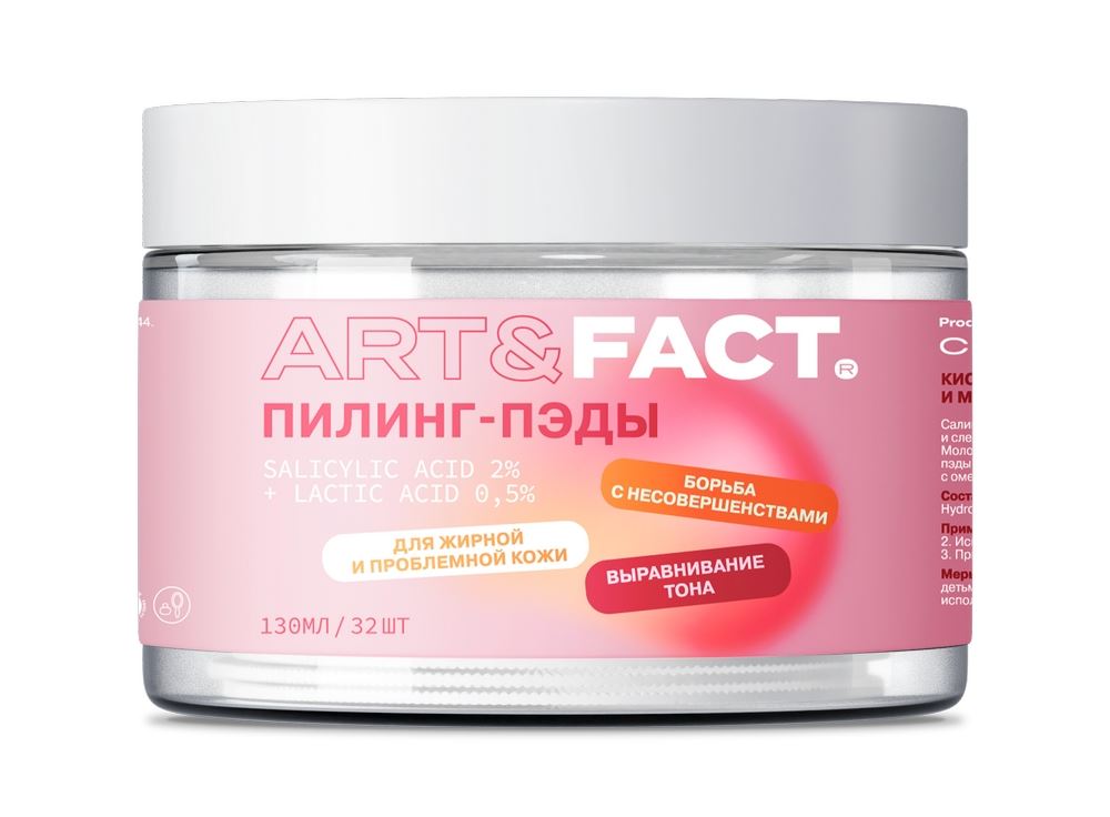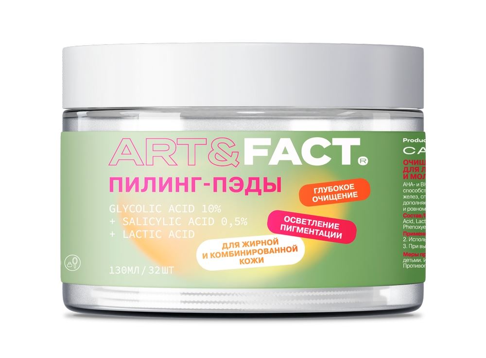 ART&FACT. сохранил ключевые активы в составе пэдов, но пересобрал формулы, чтобы они работали мягче, стабильнее и комфортнее. Важные изменения коснулись и самих пэдов: ватные диски стали больше, у них появился удобный кармашек для пальцев — для более комфортного и гигиеничного применения. Также изменилась упаковка: дизайн стал современнее, этикетка – информативнее (чтобы клиент сразу видел, какому типу кожи подходит средство и какой эффект будет от использования), а под крышкой появилась защитная мембрана для герметичности и контроля вскрытия. На этом изменения не закончились, рассказываем о них подробнее: