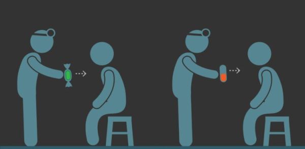 Плацебо происходит от лат. placebo, дословно — «буду угоден, понравлюсь». Плацебо могут быть, например, сахарные таблетки, физраствор или крахмальные капсулы. Источник изображения: vox.com