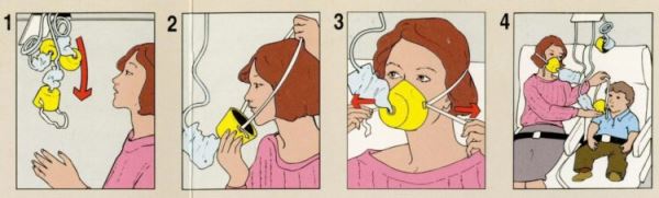 Если кислородная маска выпала, действовать нужно сразу. Сначала наденьте ее на себя и потяните вниз, чтобы запустить генерацию кислорода. Закрепите маску резинками, чтобы она плотно прилегала к лицу, и дышите спокойно.