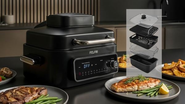 Для этих рецептов идеально подходит многофункциональный аэрогриль Мультишеф FELFRI FF-AF-10. Он заменяет сразу несколько кухонных приборов и снимает ту самую бытовую суету, которая чаще всего мешает наслаждаться готовкой. Устройство самостоятельно поддерживает нужную температуру, равномерно прогревает продукты и позволяет готовить без постоянного контроля и открывания чаши. Это особенно важно, когда хочется не следить за таймерами, а быть рядом друг с другом.