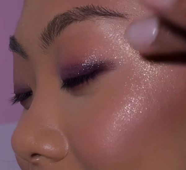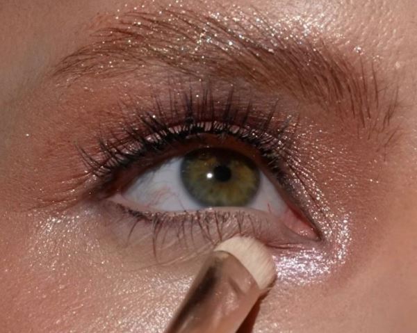 Щедро наносим спарклы не только на веки до бровей, но и на сами брови, а также по нижнему веку. Визажисты советуют добавить блеск вместо хайлайтера на скулы – так, чтобы сияние было видно издалека.