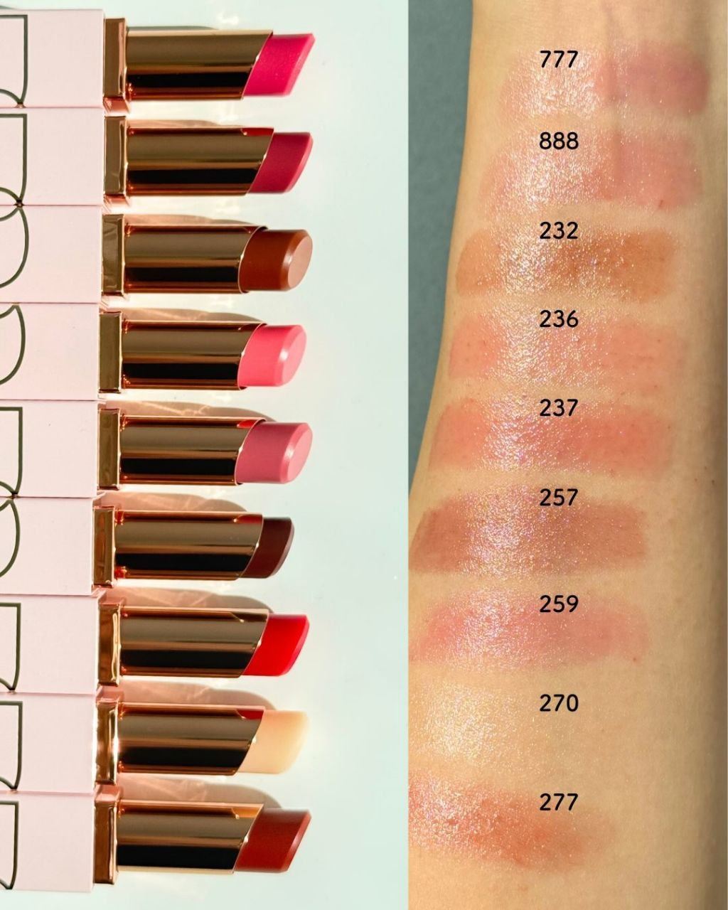 Живые фотографии и свотчи новых бальзамов для губ NARS Afterglow Lip Balm Spring 2026 (подробный пост о них по ссылке).