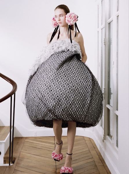 Dior Dior показал платья с жесткими, «закрученными» юбками, напоминающими лепестки или раскрывающиеся соцветия. Schiaparelli Дэниэла Роузберри, верный своей сюрреалистичной ДНК, представил платья и жакеты с гиперболизированными плечами.
