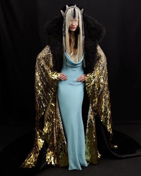Шляпы и ободки вернулись как финальный акцент фантазийных образов. Chanel показал повязку на голову с перьями. А Valentino использовал головные уборы как отсылку к нуарным фильмам — от масок до нимбообразных диадем.