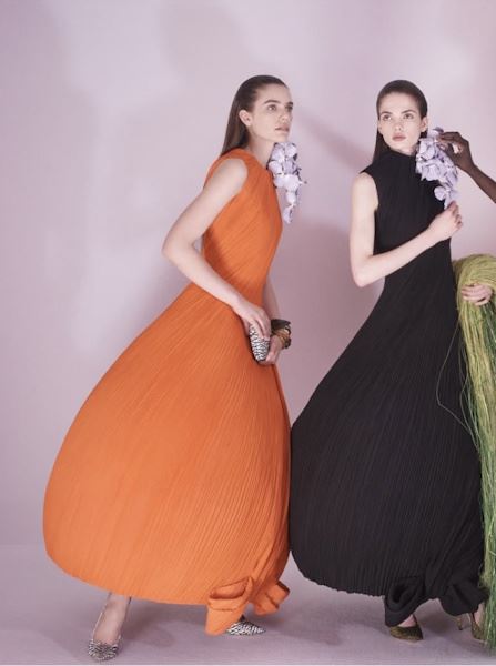 Dior Матье Блази в Chanel выбрал нюдовые, «будуарные» оттенки — пудровый и персиковый. Dior и Valentino, напротив, взяли насыщенную фуксию и романтичный алый.