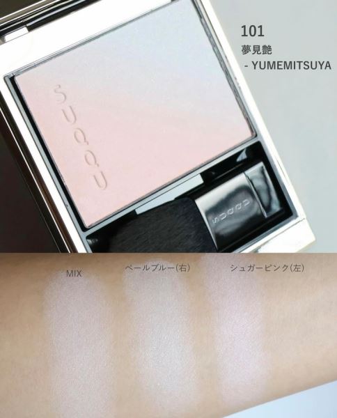 Пудровый хайлайтер придаст вашим щекам романтическое сияние. Хайлайтер с градиентым переходом от мерцающего бледно-розового к серебристо-голубому в лимитированном оттенке 101 Yumemitsuya.