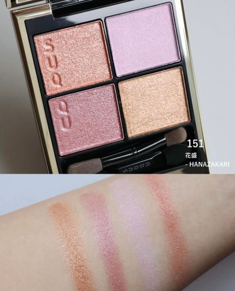 Культовая четырёхцветная палетка, в которой сочетаются изысканные оттенки, сияние и кремово-шёлковая текстура. Четыре гармонично подобранных цвета помогут придать взгляду естественную глубину, создадут мягкие переходы и эффект безупречного профессионального макияжа без лишних усилий. Тени ложатся ровно, легко растушёвываются и наслаиваются, оставаясь идеально свежими в течение всего дня. Палетка представлены в оттенке 151 Hanazakari. Эта палитра воплощает в себе мир цветущей вишни, сливы, персиков и слив (коралловый с крупными золотым и розовым перламутром, бледно-голубовато-розовый, розовый с серебристым перламутром и металлизированный золотой).